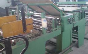 Equipment: with upper sheet fed by hand, and lower sheet is being fed
