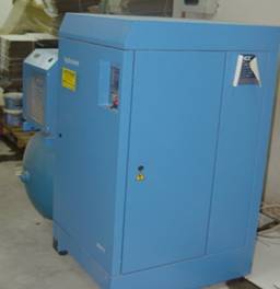 Equipment: with motor 15 kW, max press: 8 bar, Capacity: 2350 L/min, with air dryer MCIB Compact type: COM 30 weight 54 kg, Pmax: 16 bar,